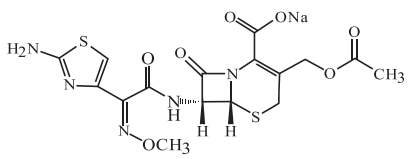 化學名稱:(6R,7R)-3-[(乙酰氧基)甲基]-7-[2-(2-氨基噻唑-4-基)-2-(甲氧亞氨基)乙酰氨基]-8-氧代-5-硫雜-1-氮雜雙環[4.2.0]辛-2-稀-2-甲酸鈉鹽.